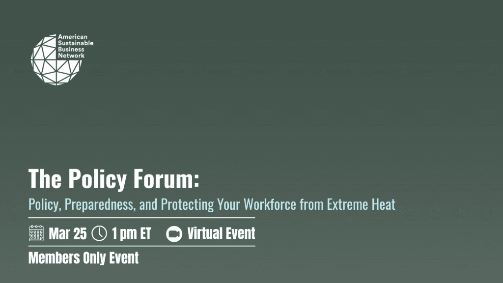 As extreme weather intensifies, it’s more important than ever for businesses to understand not only how extreme heat impacts employees, productivity, and cost—but also how the heat policy and preparedness landscape is evolving. Join leaders from the National Commission on Climate and Workforce Health for evidence-based insights and analyses of heat-related regulation across federal and state levels. This webinar will equip sustainability leaders with the tools to protect their workforce, build heat resilience across their organizations, and engage confidently in public policy conversations on extreme heat throughout the US.