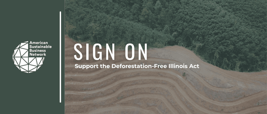 Earlier this month, the Deforestation-Free Illinois Act (SB2157/HB3197) was filed that would prevent the State of Illinois from procuring goods from a variety of agricultural sectors: beef, cocoa, coffee, leather, palm oil, paper/pulp, soy, and lumber if those goods contain inputs that were grown or harvested on land that was cleared of primary forest, degraded, or subject to human rights violations.