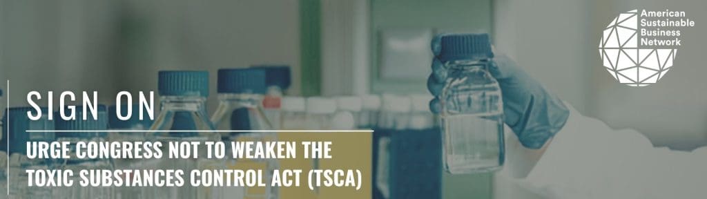 Congressional efforts to undermine the federal protections provided by the Toxic Substances Control Act are underway. Your business voice is needed to stand up for safer chemicals and products that benefit employees, customers, communities, the environment and our economy.