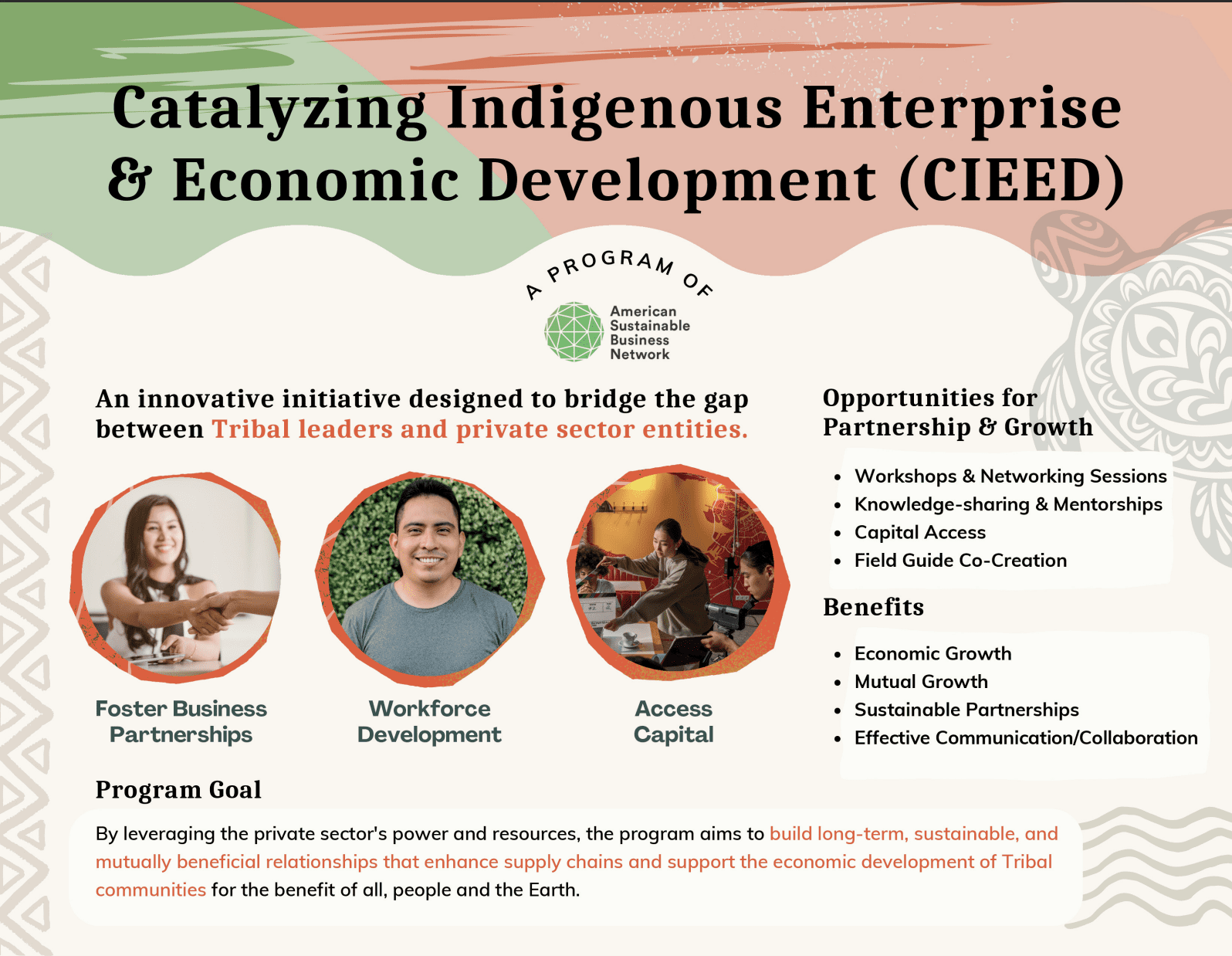 ASBN is proud of this public-private partnership with the DOI, which leverages our business and investor community to support tribally-led, community-based economic development through a community-driven approach emphasizing participatory development principles and practices.