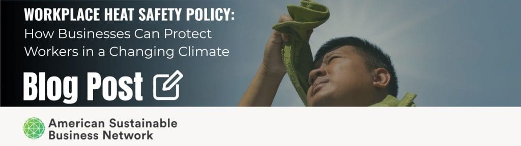 The American Sustainable Business Network (ASBN) recently convened a policy forum to address this gap, bringing together David Leathers from the Health Action Alliance and Charlotte Brody from the Blue Green Alliance and National Commission on Climate and Workforce Health to discuss what responsible employers need to know — and do — right now.